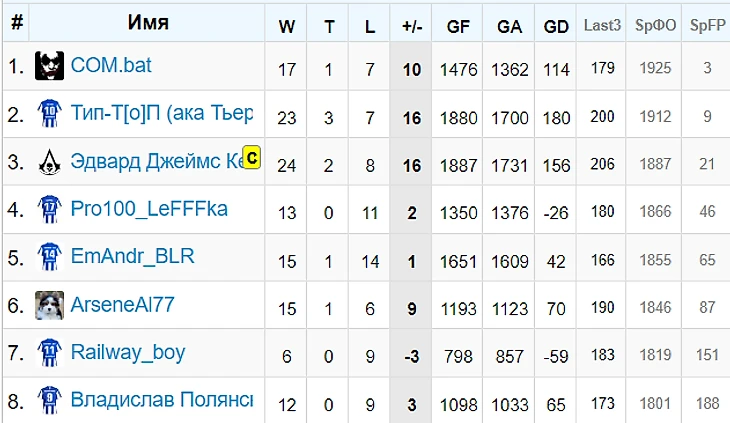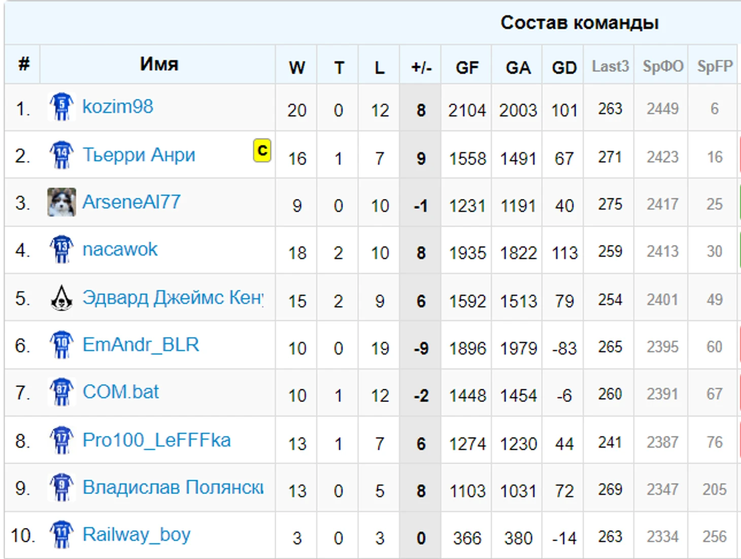 Исходя из цифр видно, что в целом решения капитана все-таки пошли в плюс, а в некоторых важных матчах и вовсе принесли победу. Состав команды состоял из 10 человек, что позволяло мне активно использовать заморозки и каждый из команды провел немало матчей.
