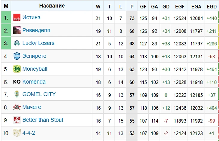 Ну и также стоит отметить, что Легенда в конце сезона потеряла очень много очков, что сказалось на итоговом месте. 6 поражений в 9 последних турах, это кошмарный результат. В том числе из-за этого не смогли удержаться в 3-ке. Но если присмотреться по набору фо, то Легенда лишь 10-я, что свидетельствует о том, что произошел обычный регресс к среднему и оверперформ закончился.