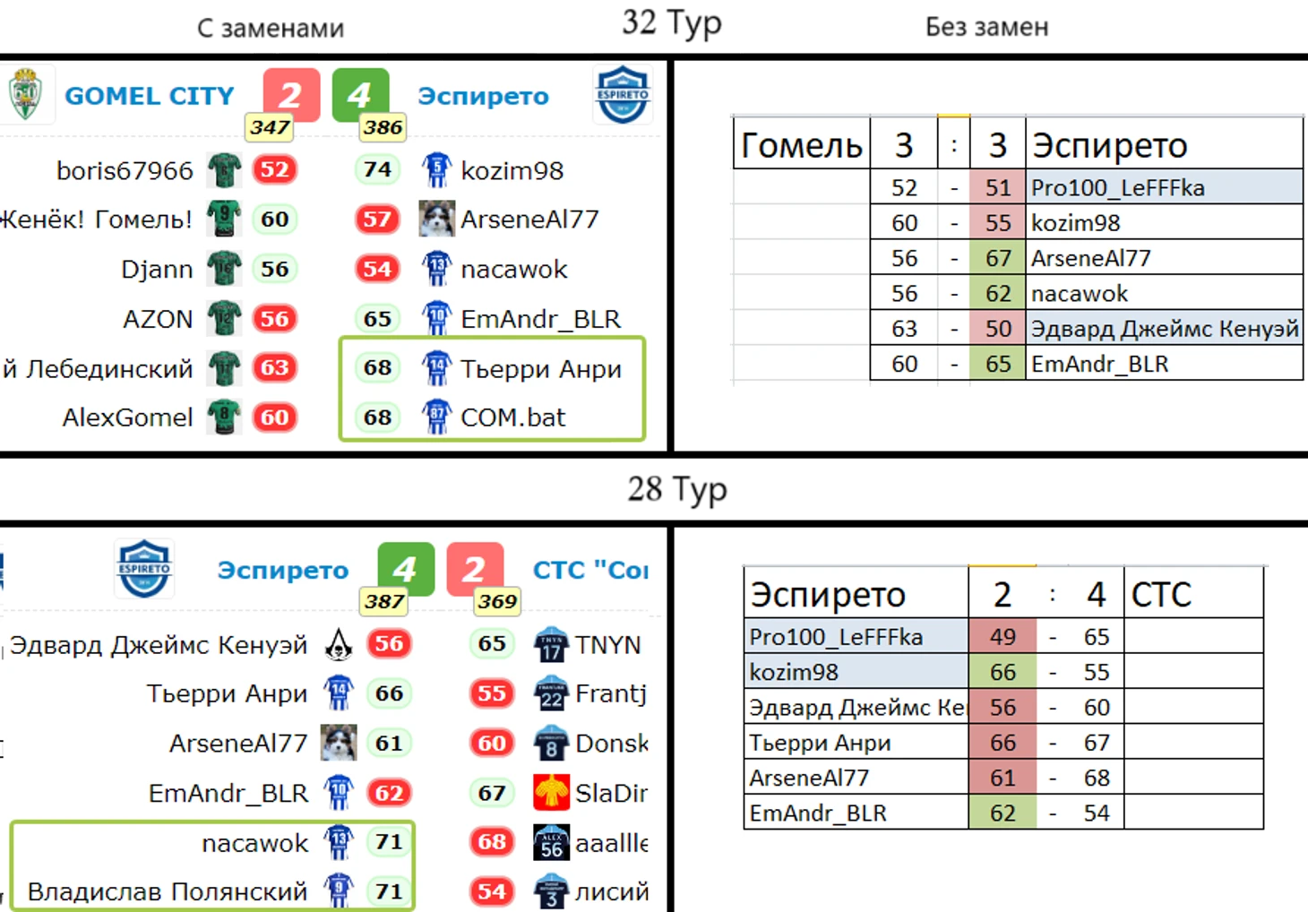 Не самые выдающиеся результаты также были связаны с тем, что два наиболее интересующихся АПЛ игрока - Тьерри Анри и nacawok, никак не могли начать играть в свою силу и после 20-ти с лишним сыгранных туров находились за пределами топ-500. Для нас с nacawokэто ощущалось как провал.