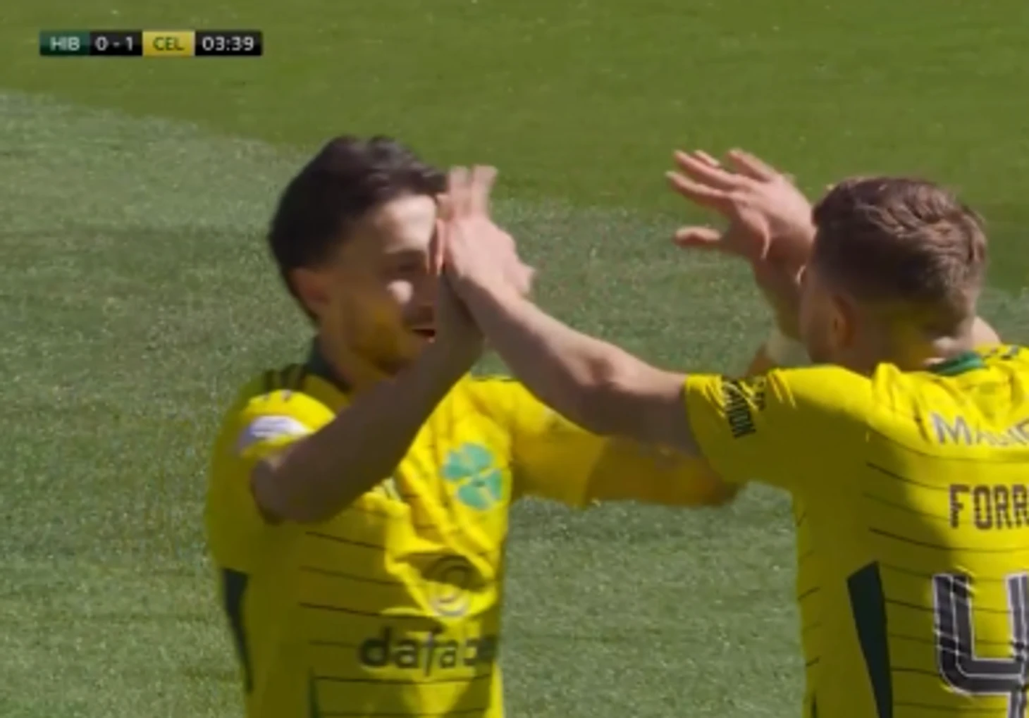 Девятнадцатая минута, вратарь «Хиберниана» ошибся с передачей и отдал пас игроку «Селтика» Рео Хатате тот же начал убегать на правый фланг, где отдал передачу Николасу Кюн, а Николас в то время отдал передачу на Каллума Макгрегора, Каллум решился проверить вратаря и из-за штрафной нанёс удар который полетел в верхний левый угол.