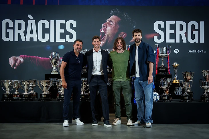 После 18-ти лет в «Барселоне» Серджи Роберто покидает клуб своей жизни. На церемонию прощания с капитаном пришли действующие футболисты команды и легенды «блауграны» – Хави, Пуйоль и Пике.