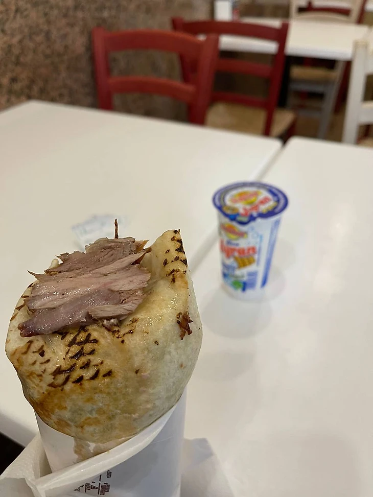 Из неочевидных плюсов Пьетралаты отмечу большое количество забегаловок, где можно дешево и вкусно поесть. Район вокруг «Олимпико» по этому показателю однозначно проигрывает. Я в итоге зашел в сирийское кафе, где съел невероятно вкусную шаурму с говядиной и запил это все холодным айраном.