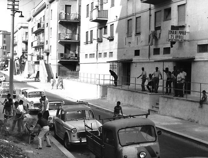 Людей расселяли в построенные на скорую руку бараки, которые из-за низкой стоимости и ужасных условий в народе прозвали «дома за 7 лир». В них не было ни туалетов, ни кухонь, ни канализации. Дополнительной проблемой стало то, что Пьетралату постоянно затапливала находящаяся неподалеку река Аньене.