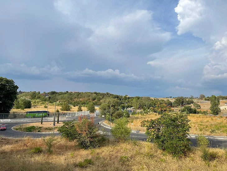 Проект нового стадиона также предполагает строительство пешеходного моста, который соединит арену с вокзалом. А пока ничего этого нет, идти пришлось по огромной парковке возле Тибуртины и вдоль автомобильных дорог. Ничего интересного там не было, зато пейзаж достаточно приятный.