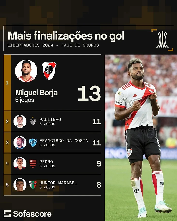 Чаще всех бьет по воротам Мигель Борха из «Ривера»