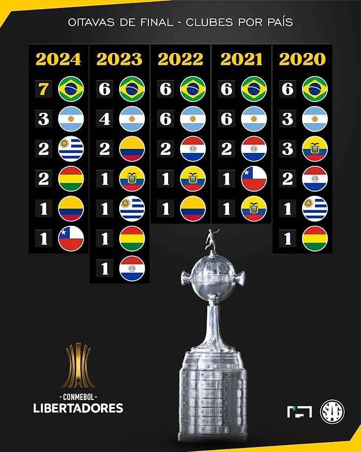 Впервые в плей-офф Либера 7 бразильских клубов.