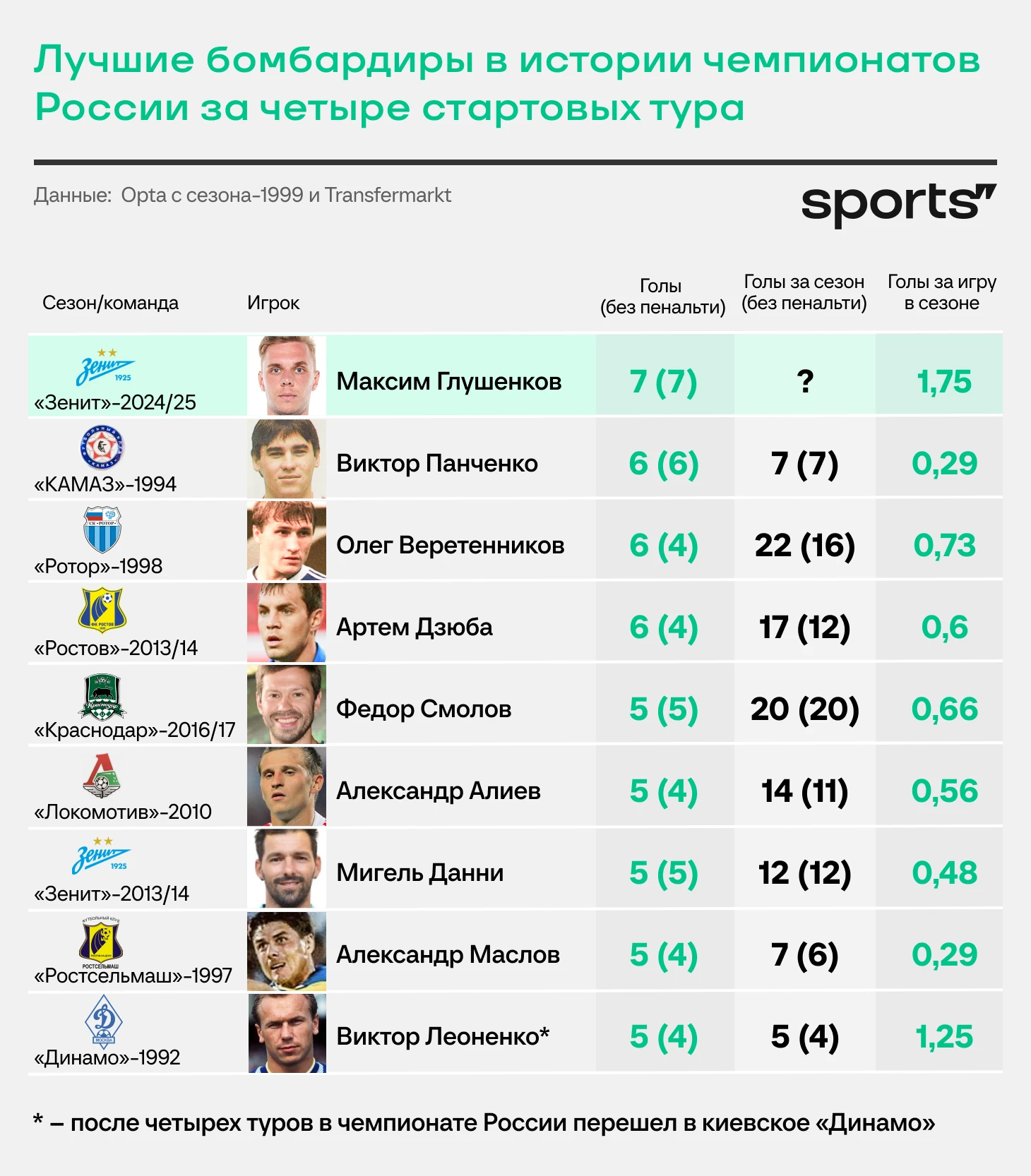 Глушенков великолепно начал сезон, переписывая бомбардирские рекорды. У Максима высокие шансы не только забить 20 голов за чемпионат, но и стать одним из лучших годовых бомбардиров в истории РПЛ.