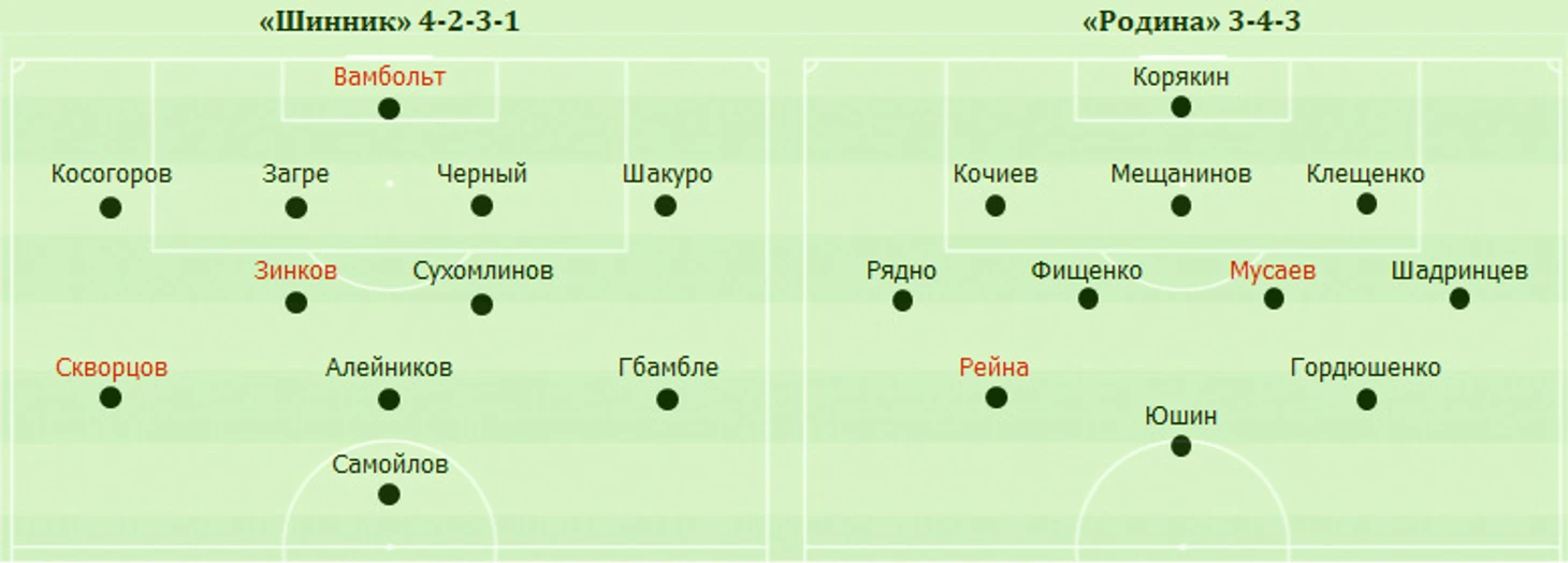 Скучнейший матч, в котором было много борьбы, много фолов и практически не было доведенных до удара атак. И это немудрено, учитывая, что в центре нападения у «Родины» играл непрофильный форвард Юшин, которого в качестве инсайдов поддерживали такие же непрофильные форварды Рейна и Гордюшенко, а у «Шинника» роль нападающего исполнял крайний полузащитник Самойлов. В итоге - один удар в створ на две команды и логичные нули на табло.