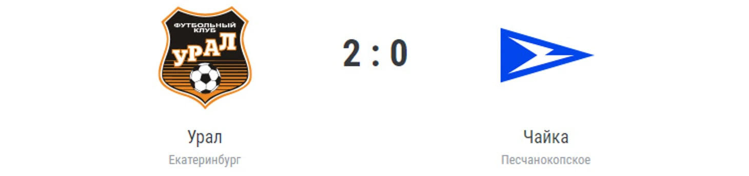 Голы: Железнов, 6 (1:0). Эмерсон, 86 (2:0). «Урал» (Екатеринбург): Ал.Мамин, Маргасов, Арт.Мамин, Итало (Эмерсон, 19), Гогличидзе (Малькевич, 46), Аюпов (Чудин, 79), Железнов, Сунгатулин, Егорычев, Ишков (Ионов, 59), Воронов (Бикфалви, 59). «Чайка» (Песчанокопское): Штепа, Николаев (Котов, 83), Нестеров, Евдокимов (Маляров, 90), Пивоваров (Пелих, 62), Янов, Зарыпбеков, Хохлачев, Кожедуб (Ивашин, 62), Библик (Руденко, 62), Бамматгереев. Наказания: Маргасов, 15. Сунгатулин, 56 (предупреждения). Судья: Панин (Дмитров). 18 августа. Екатеринбург. Стадион «Екатеринбург Арена». 11 102 зрителя.