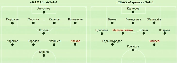 Голы: Горелов, 3 (1:0). Горелов, 26 (2:0). Козлов, 44 (3:0). «КАМАЗ» (Набережные Челны): Анисимов, Гюрджан, Маругин, Кусяпов, Почивалин (Аюкин, 80), Горелов (Дерюгин, 90+2), Козлов, Абрамов (Защепкин, 74), Акбашев, Апеков (Абдуллаев, 46), Караев (Стародуб, 74). «СКА-Хабаровск»: Кузнецов, Покидышев, Журавлев, Быков, Цаллагов, Бавин, Мирошниченко (Алиев, 62), Поярков (Гонгапшев, 46), Гаджимурадов (Носков, 76), Гаглоев (Першин, 62), Гонгадзе (Костюков, 75). Наказания: Козлов, 8. Гюрджан, 16. Поярков, 37. Цаллагов, 72. Абдуллаев, 88 (предупреждения). Судья: Перезва (Раменское). 17 августа. Набережные Челны. Стадион «КАМАЗ». 2915 зрителей.