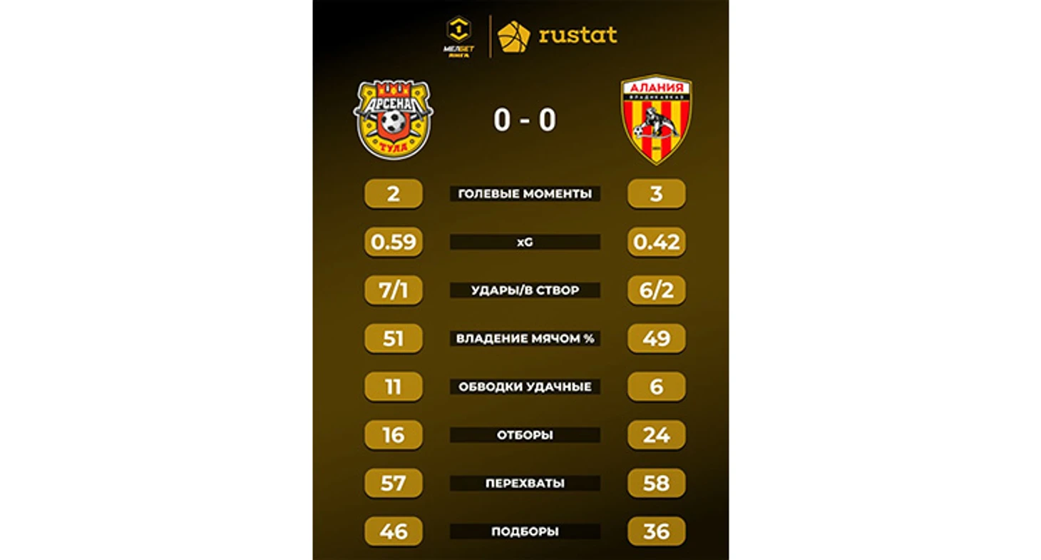 ● 11 сентября исполнится год с момента последнего поражения «Арсенала» на своём поле. В течение этого времени туляки провели на родном стадионе 17 матчей. ● «Алания» является самой «скучной» командой чемпионата с точки зрения результативности ее матчей: в шести поединках с участием владикавказского клуба было забито всего лишь шесть мячей. Это самый низкий показатель в лиге. ● «Алания» - единственная команда лиги, в шести матчах с участием которой ни разу не сыграла ставка «обе забьют».