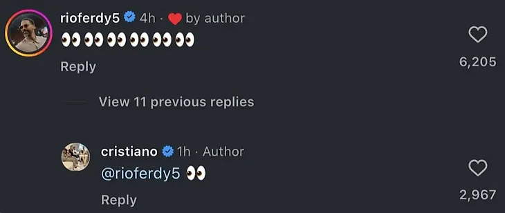 Возможно, увидим от Криштиану подкаст, так как он ответил только на коммент Рио Фердинанда, который больше года ведет свой подкаст.