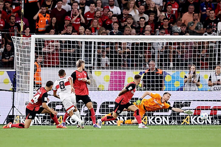 «Леверкузен» открывал сезон матчем за Суперкубок Германии против «Штутгарта». Повели быстро: Виктор Бонифасе открыл счет уже на 11-й минуте. Соперник ответил через несколько минут: финалист Олимпиады в составе Франции Энцо Мийо точно пробил с линии штрафной.