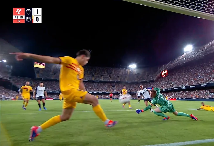 Все в «Валенсии» возмущались, когда судья не удалил Пау Кубарси – не показал вторую желтую за фол на Уго Дуро. Доиграли в полных составах – «Барселона» победила в первом туре Ла Лиги впервые с 2021 года.