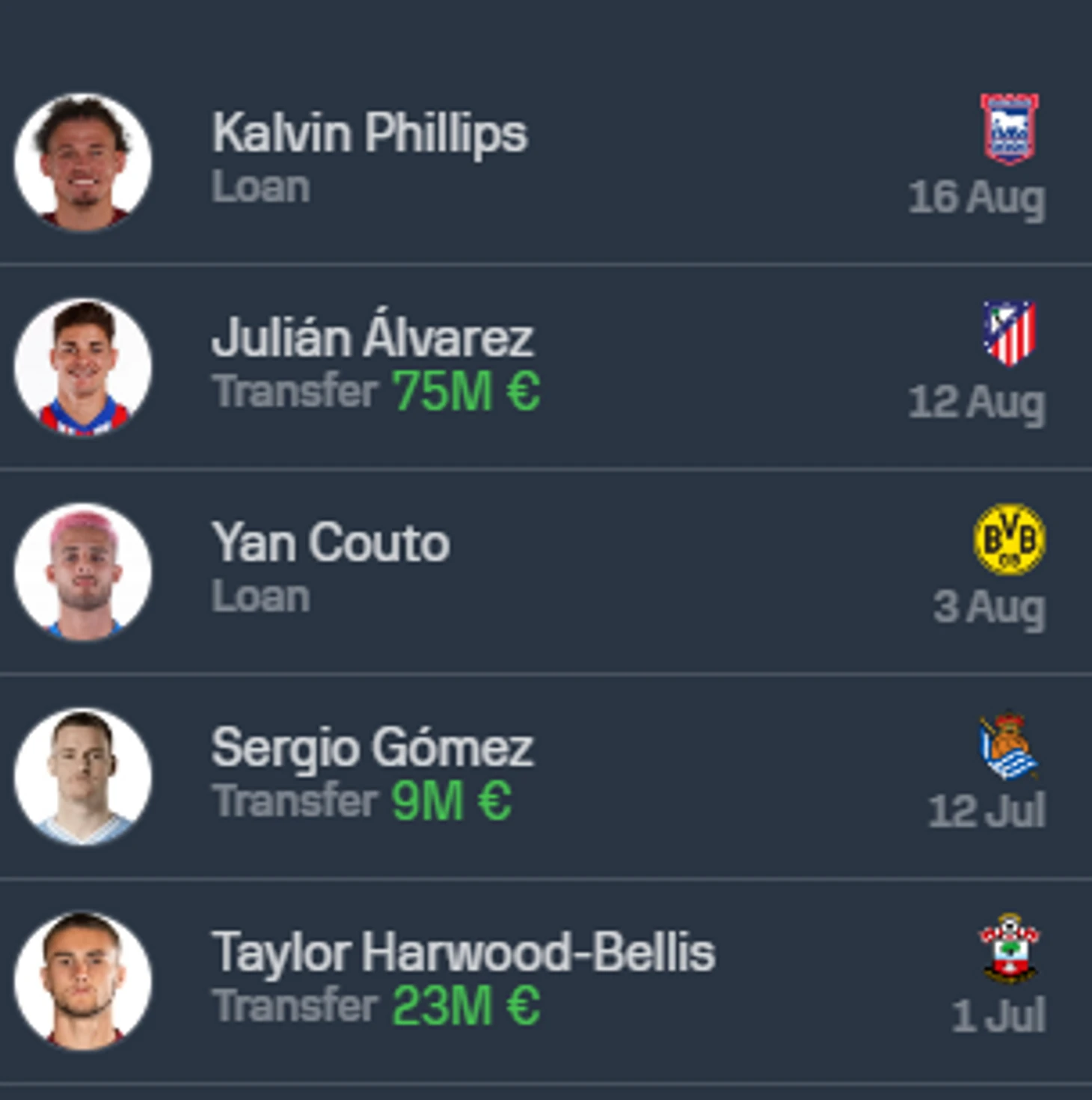 «Манчестер Сити» «Горожане» же на трансферном рынке особо и не работали. Единственная покупка - Савио, однозначным усилением вряд ли является, даже несмотря на хороший сезон в «Жироне». Все же конкуренция на флангах атаки, очевидно, не оставит особых шансов для Савио на выход в старте против команд, находящихся выше в турнирной таблице, чем на месте эдак 15-ом. Но я не исключаю и возможную покупку замены Альварезу, укатившему в «Атлетико», т.к профильного сменщика Холланда у «горожан» нет.