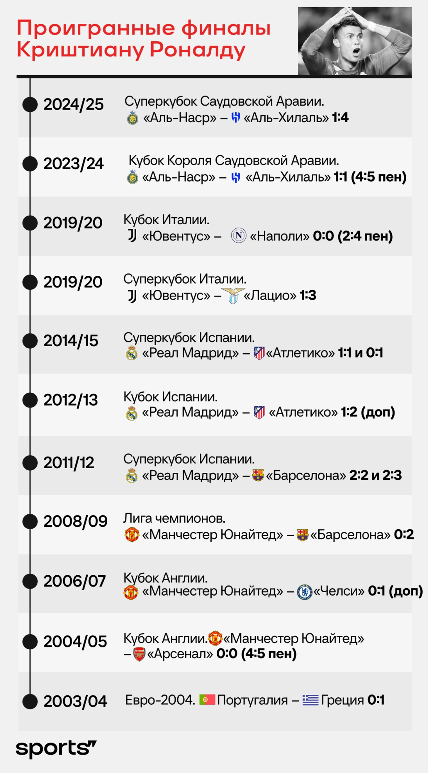 Впервые в карьере Криштиану проиграл два финала подряд.
