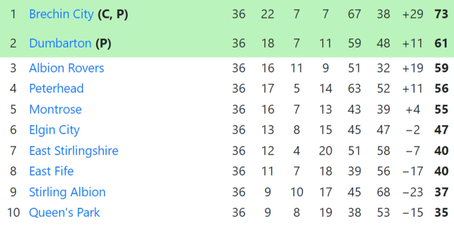 «Рейнджерс» без проблем выиграл титул чемпиона, в то время как «Куинз Парк» вышел в плей-офф, но проиграл «Питерхеду». Одним из членов той команды был молодой Эндрю Робертсон, который принял решение играть за «пауков», а не поступать в университет, и это оказалось мудрым выбором в свете его последующей карьеры.
