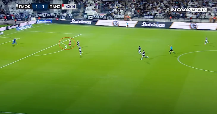 Но именно с этого корнера забил Оздоев: Магомед пробил с разворота и принес ПАОК победу в первом тайме (2:1).