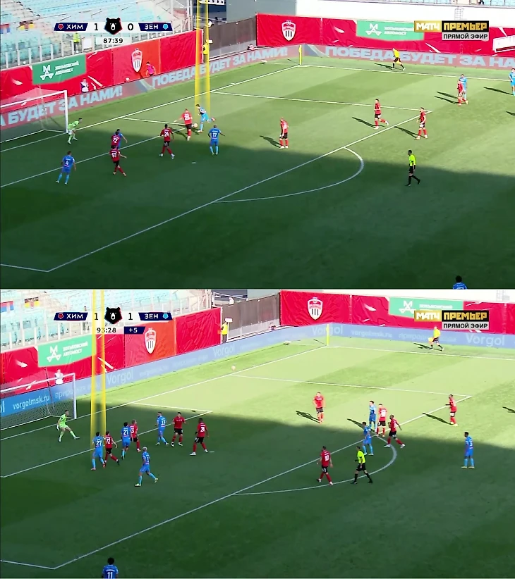 Вернулся «Зенит» прошлого сезона: тягучая поперечная игра и минимум изобретательности, умноженные на дисциплинированную оборону. Это в том числе топ-работа опорников «Химок» плюс спуски вингеров Александра Руденко и Резиуана Мирзова к защитникам.