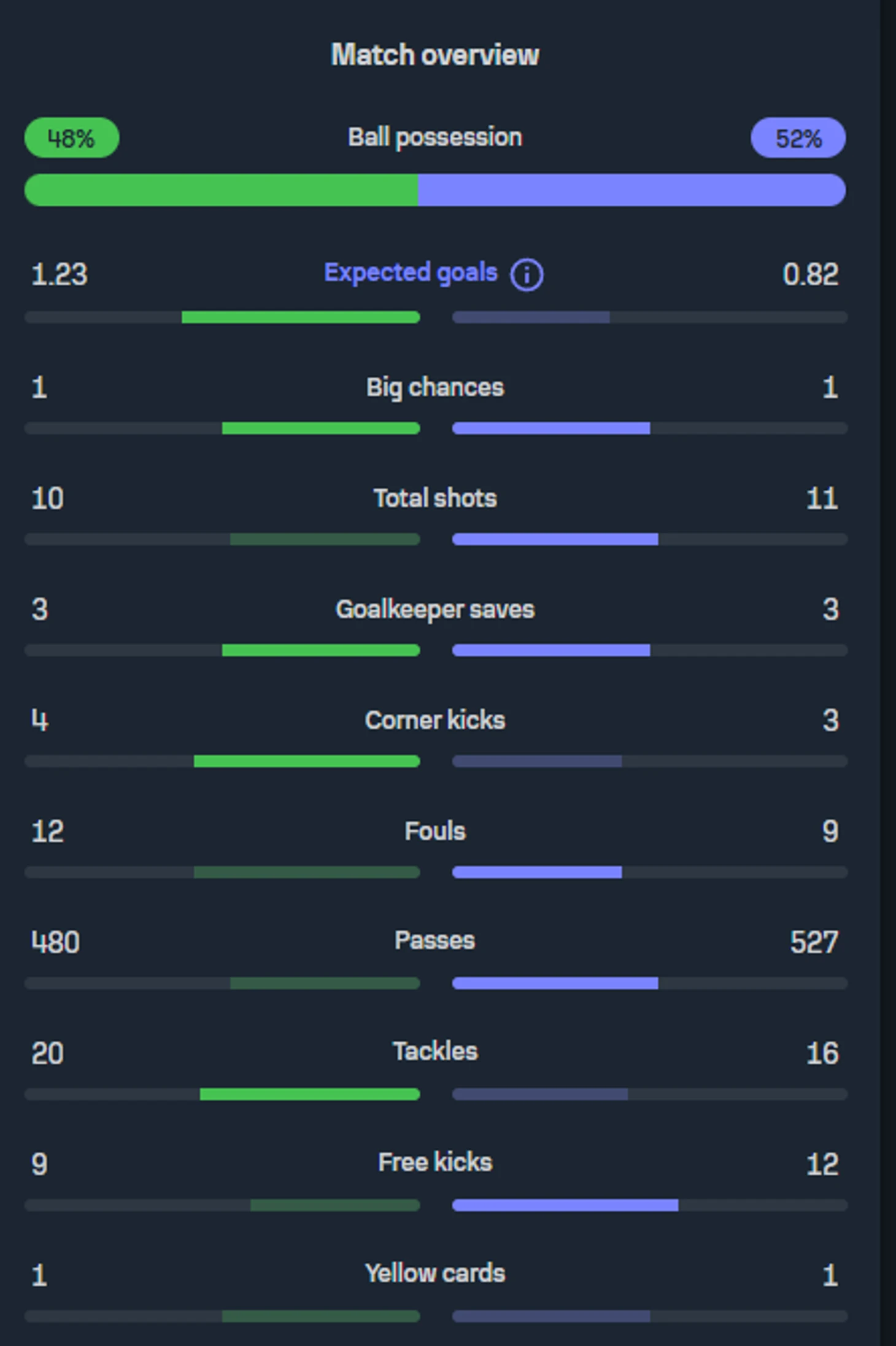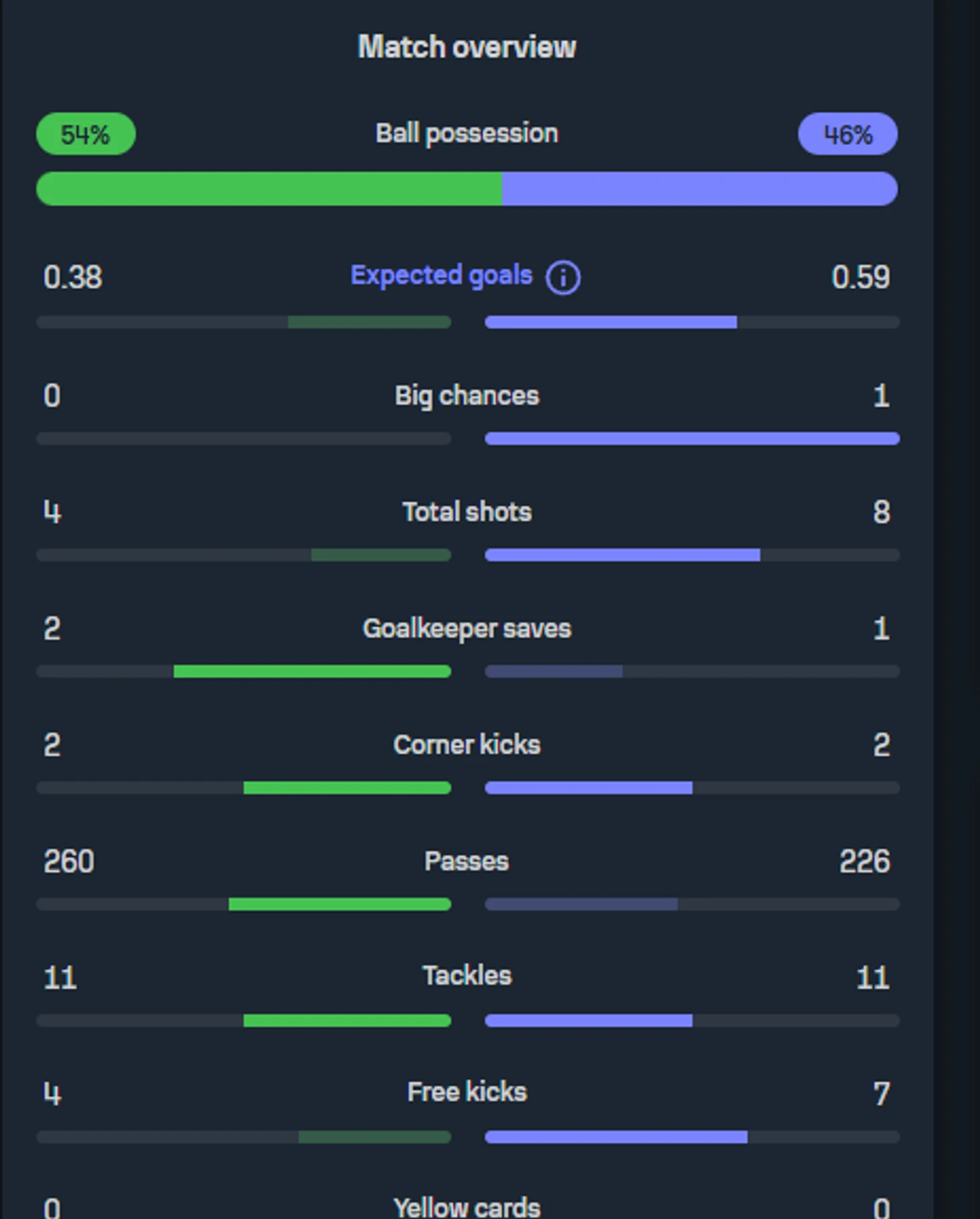 Итоговая статистика 1-ого тайма. Источник: www.sofascore.com