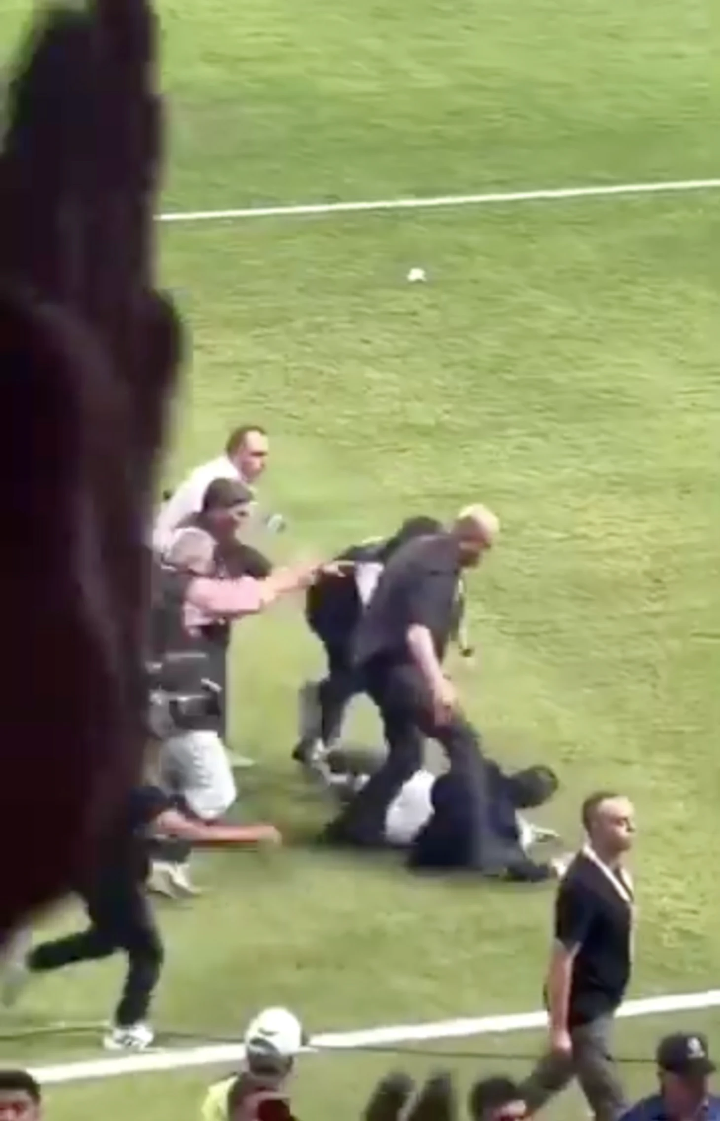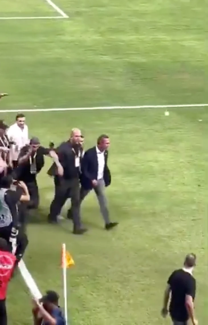 Сразу после один из сотрудников «Гезтепе» толкнул его: президент «Фенербахче» рухнул на газон.