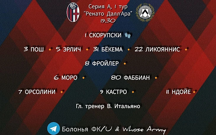 Серия А, 1-й тур. «Болонья» – «Удинезе» 1:1