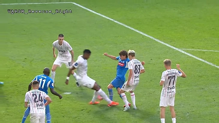 и через долю секунды, когда Ньямси «добавил коленом», и с «толкованием ЭСК» прямо в кадре