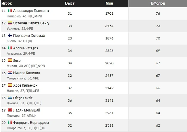 Но есть повод и порадоваться – Диаманти выиграл гонку ассистентов! И это в 38 лет!