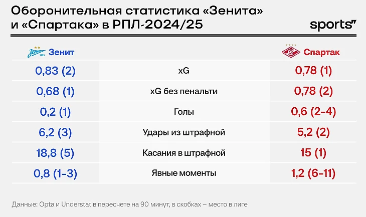 «Спартак» же – лидер по владению в РПЛ, ожидаемым голам, ударам и касаниям в штрафной.