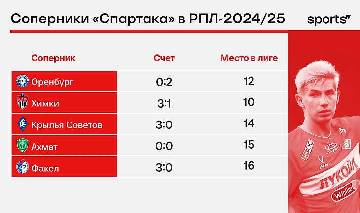 У Деяна Станковича не получилось с «Оренбургом» (0:2) и «Ахматом» (0:0), зато на классе переиграны «Химки» (3:1), «Крылья» (3:0) и «Факел» (3:0): Эсекиэль Барко легко влился в команду и больше всех в РПЛ отдает в финальную треть, Манфред Угальде забил четыре гола, а «Спартак» активен в штрафной, лидируя вместе с «Динамо» по голам со стандартов (4, за весь прошлый сезон при Гильермо Абаскале – 2).