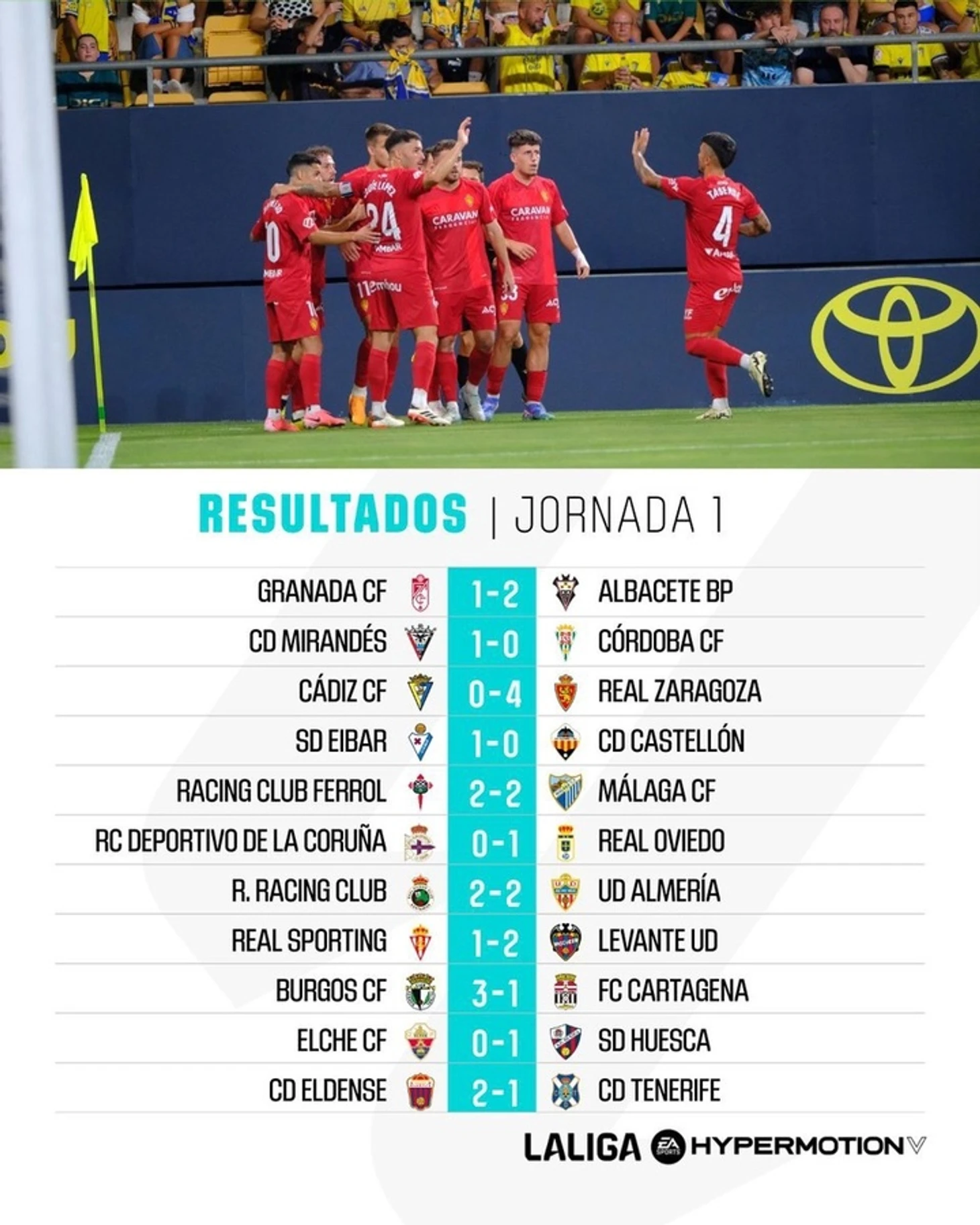 А вот и сам клуб зубастика Роналдо. Но матчу интригу создавал не этот факт, явно. А вот то, что обе команды только поднялись в Примеру - это интересно! На деле всё решил рикошет от игрока гостевой команды после удара Рауля Моро, на которого этот мяч и засчитали.
