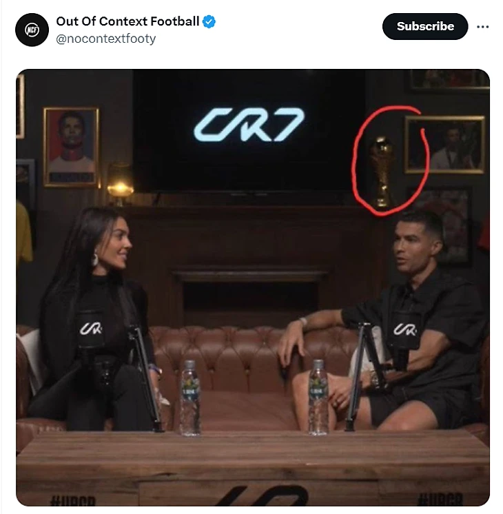 Фанаты заметили трофей ЧМ в студии ютуб-канала Роналду. Это правда?