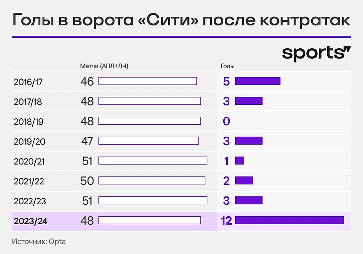 Начали невероятно много пропускать после контратак. Показательно, что второе место по голам – сезон, который Илкай пропускал из-за травмы. Пеп не раз говорил, что Гюндоган идеально понимает, какой ритм держать в атаке – стоит ее ускорять или наоборот тормозить. Этого качества сильно не хватало в прошлом сезоне. В составе было слишком много игроков переходного типа.