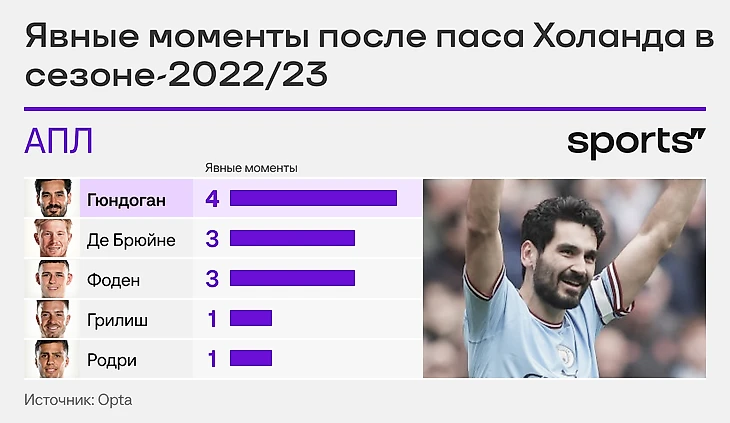 Самому Холанду тоже проще, когда рядом такой партнер. Гюндоган был самым частым адресатом передач в последнем сезоне немца за клуб. Эрлинг создал для него больше всего явных моментов.