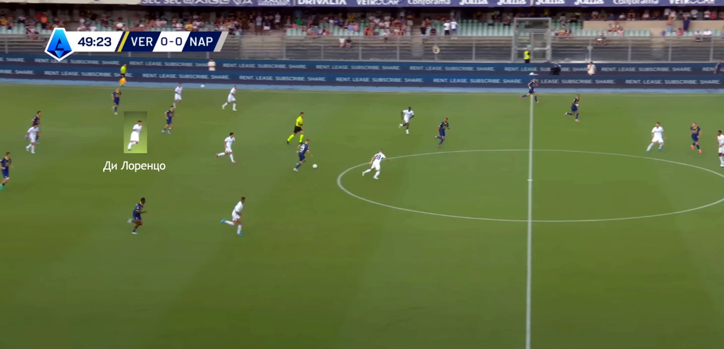 Так «Наполи» пропускал первый гол – сквозь зону Ди Лоренцо, которая задержался в атаке, и разрывы между линиями.