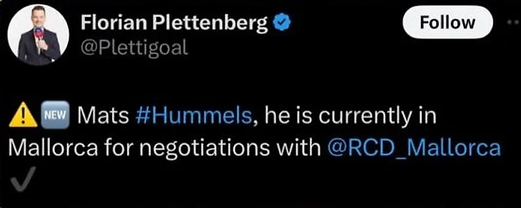 Историю вскрыл журналист COPE Марко Антонио Санде, опубликовавший сообщение от семьи Хуммельса: там недовольны, что неавторизованный агент вел переговоры с «Мальоркой» от имени игрока и путал других журналистов.