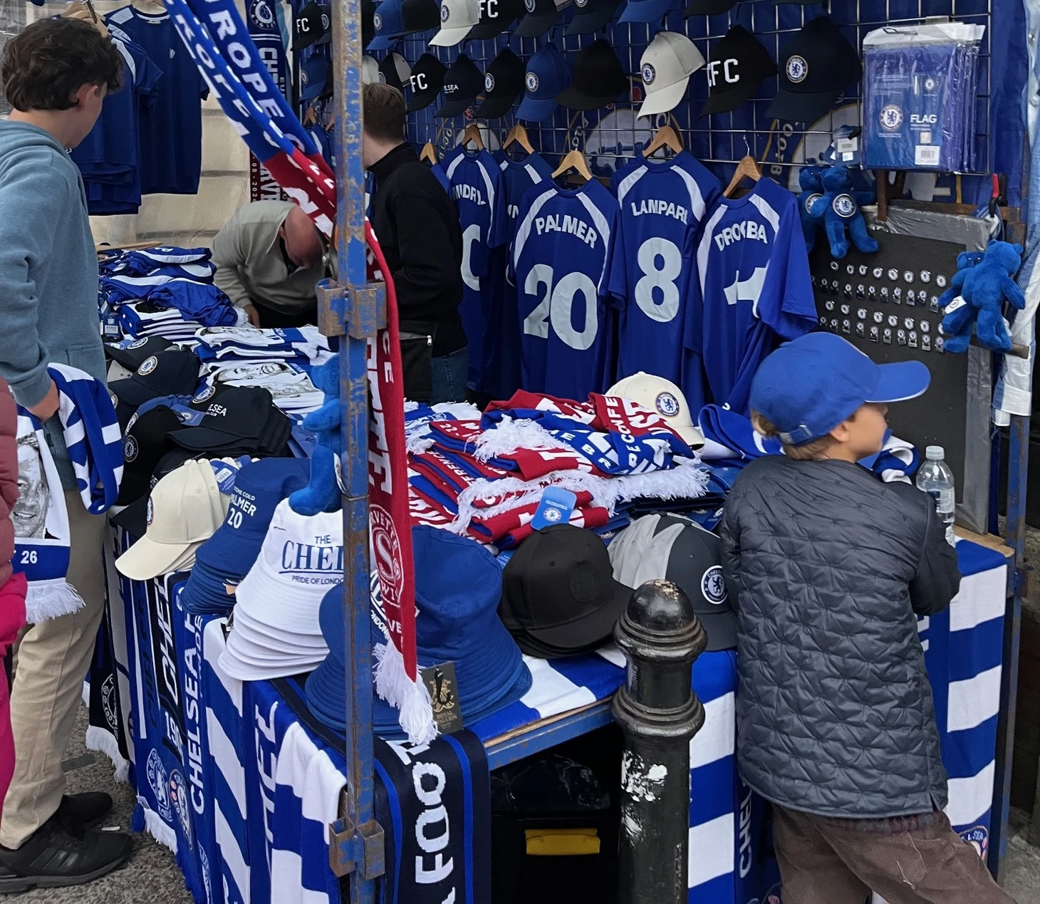 Именно об этом разнообразии футболистов думалось мне, глядя на продажу мерча у «Стэмфорд Бридж». Сколько же нужно делать разных футболок, как не запутаться в них производителям и продавцам, нужно ли ждать окончания трансферного окна перед выпуском новой серии, а главное, как сделать выбор привередливому покупателю? Видимо, об этом думали и в этой точке продаж и сделали упор на классику (Дрогба, Лэмпард), ну а Коул Палмер отвечает за нынешний состав.
