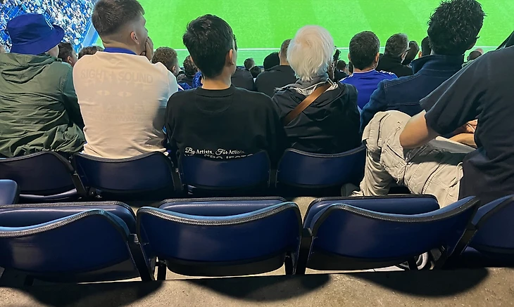 Придя на трибуну, я обнаружил, что мое «премиальное» место означало достаточно хороший вид на поле, а также кожаные сиденья. В Англии мне приходилось сидеть на столетних деревянных стульях «Крейвен Коттедж», на безликих пластиковых сиденьях современных корпоративных стадионов, а вот на кожаных – в первый раз.