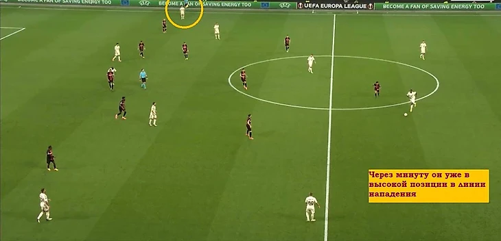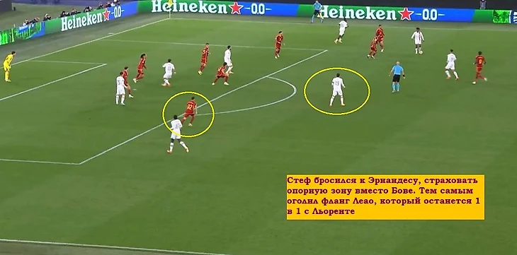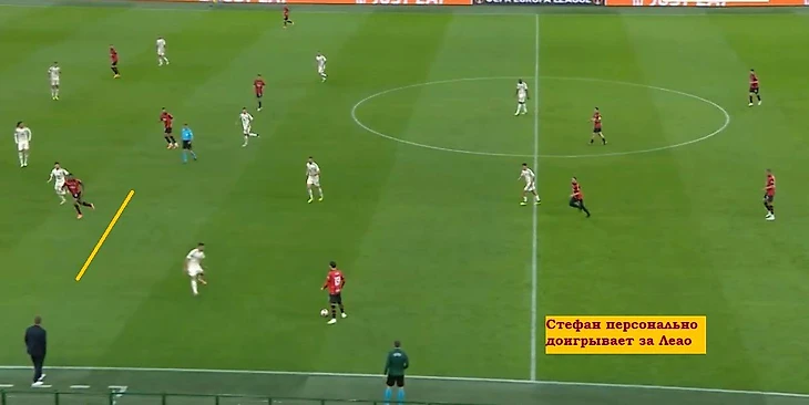 На этом скрине видно, что основной ориентир для Эль-Шаарави именно Леау. Челик встречает Тео Эрнандеса, Стеф дорабатывает за португальцем.