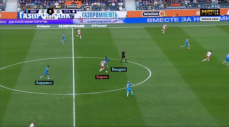 Если в середине всё стало надёжнее, то с правым флангом Семак явно не попал. Решение сразу показалось странным. Да, Эракович периодически выходил на фланге в прошлом сезоне, а сейчас явно не был готов Караваев (иначе он бы обязательно вышел в старте), но смещение Барриоса было более хорошим вариантом.