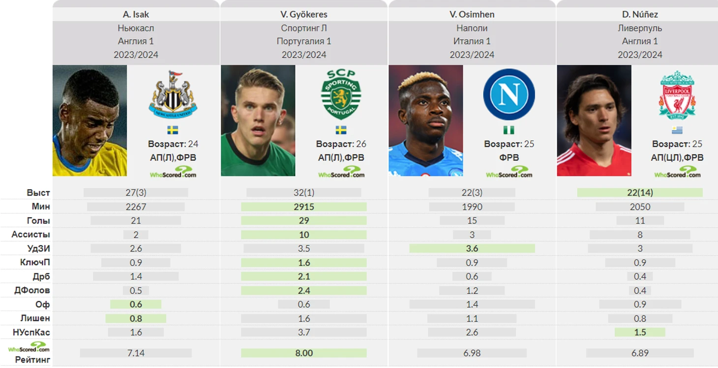 Этим летом с лондонским клубом активно связывали только одного нападающего – Беньямина Шешко, но словенец переподписал контракт и продолжил свое выступление за «РБ Лейпциг». Поэтому его в этот список я не вносил, а добавил Александра Исака, Виктора Дьекереша и Виктора Осимхена – форвардов, с которыми чаще всего связывают «Арсенал», а также Дарвина Нуньеса, слухи о котором неожиданно появились вчера.