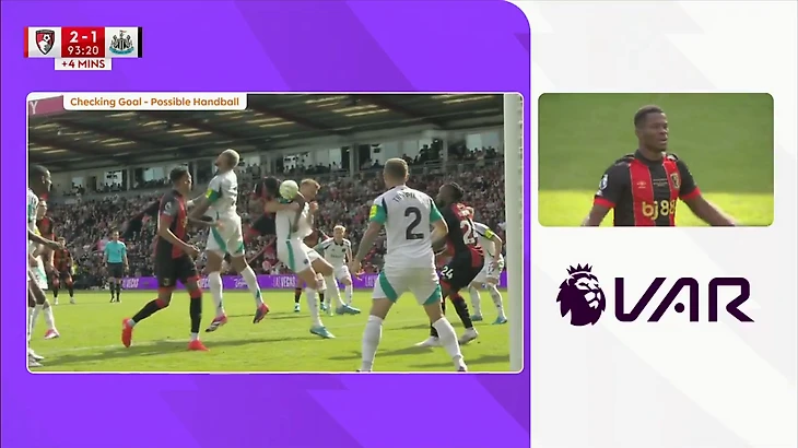 При счете 1:1 «Борнмут» на 93-й забил второй – после углового Данго Уаттара перевисел защитника и отправил мяч в ворота. Судьи в поле гол засчитали, но ВАР разглядел: футболист бил по воротам плечом.