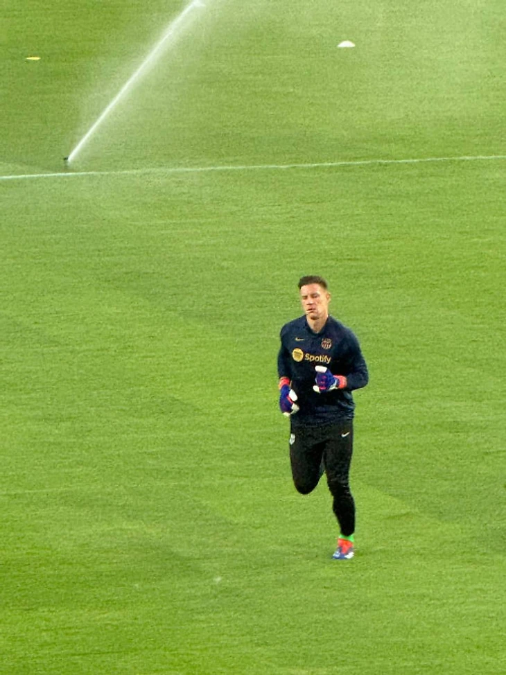 Первым на поле под свист болельщиков «Валенсии» разминаться вышел тер Штеген.