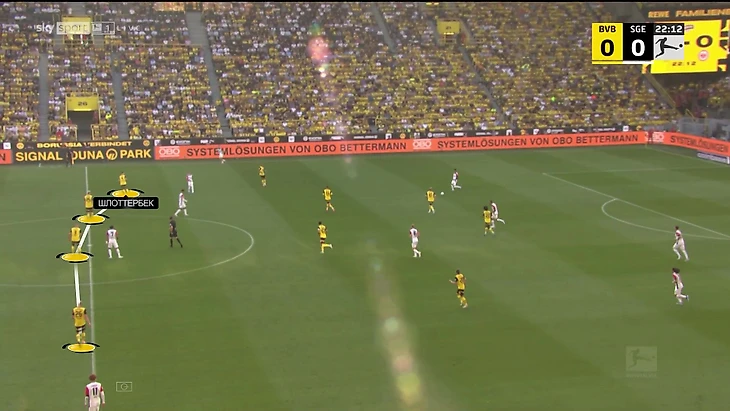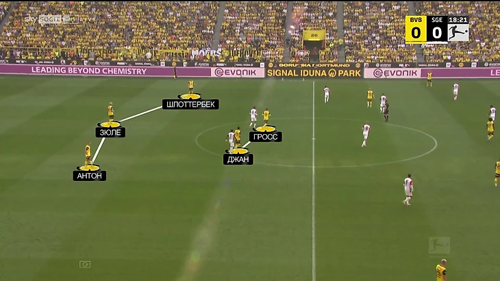 А при обороне у «Боруссии» была четверка защитников – левого играл Нико Шлоттербек: