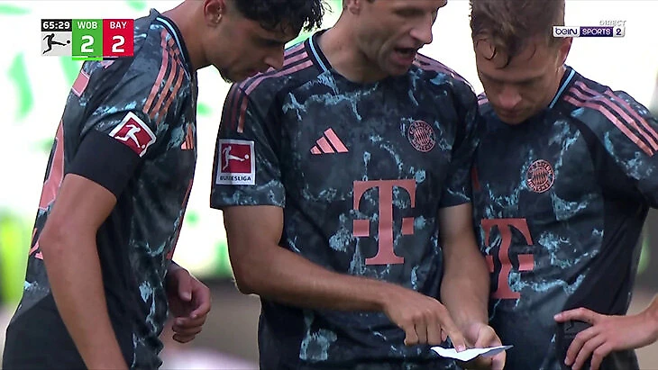 На 65-й минуте матча «Баварии» с «Вольфсбургом» (3:2) на замену вышел Томас Мюллер при счете 1:2. «Бавария» мгновенно сравняла на угловом, а в ТВ-трансляцию попал эпизод, как Мюллер подозвал Йозуа Киммиха и Александра Павловича и достал записку авторства Венсана Компани у себя из трусов.