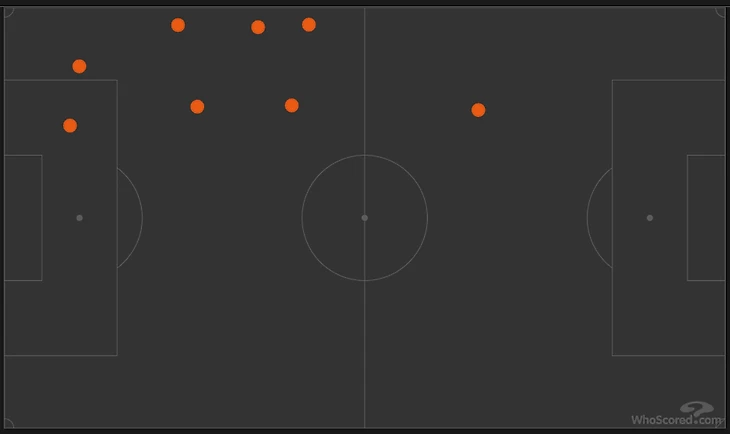 Он не просто не провалился в этой роли – грандиозно разрушал. 8 отборов (больше всех) и ни разу не пройден на дриблинге: