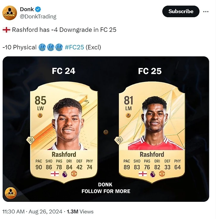 Но после невыразительного периода EA Sports присвоила Рэшфорду рейтинг 81 в FC 25 перед предстоящим релизом 27 сентября.