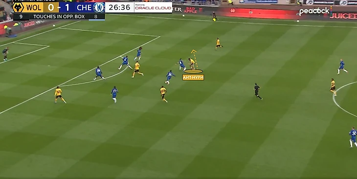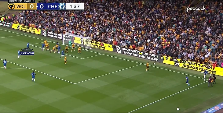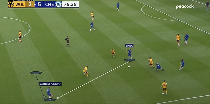 Первый гол «волков» вскрыл главную проблему «синих» на старте сезона – центр поля, и снова нас приводит к вечному вопросу об Энцо Фернандесе. После жесткого отбора у Кайседо, сначала Энцо не поставил корпус в борьбе, а затем Аит-Нури просто увел аргентинца на ложном движении.