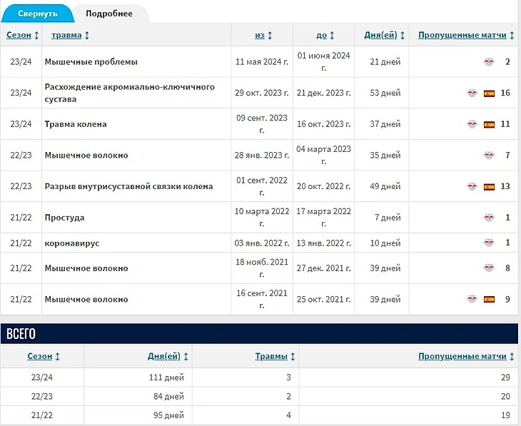 Однако есть нюанс. За последние три сезона Федерико получил 17 повреждений! По данным Transfermarkt, cамой тяжелой травмой был разрыв крестообразной связки в сезоне 2021/22, из-за чего Кьеза 269 дней был вынужден находиться за пределами поля. За три года Феде пропустил 84 матча.