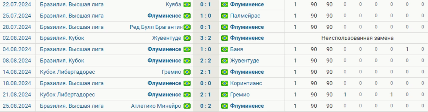 До прихода защитника команда плелась в зоне вылета, но после ситуация кардинально изменилась и теперь бразильцы уже отдаются от нее. Тиаго Силва провел в составе «Флуминенсе» уже шесть матчей, в которых клуб одержал пять побед. Более того, в этих играх они не пропустили ни одного мяча!